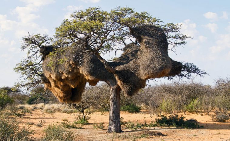 Далеко-далеко, среди просторов Южной Африки, живет маленькая и очень удалая птичка под названием Обыкновенный общественный ткач. Лучше имени и не придумаешь — эволюция обучила этих птах строительству коллективных гнезд-общежитий. И команда Lemurov.net просто поражается, каких масштабов может достигнуть птичья архитектура, если работать на совесть!