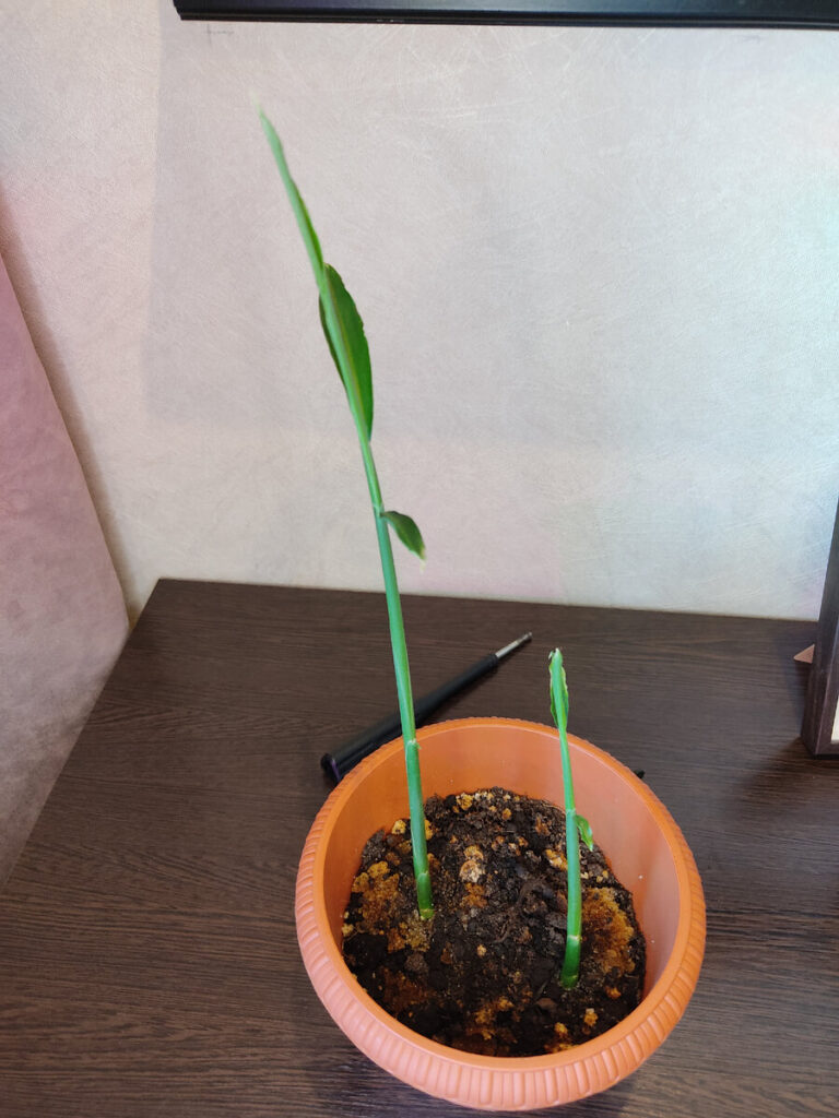 Они росли так быстро, что ещё через 12 дней высота первого ростка уже составляла 65 см, а ширина листьев доходила до 3 см.