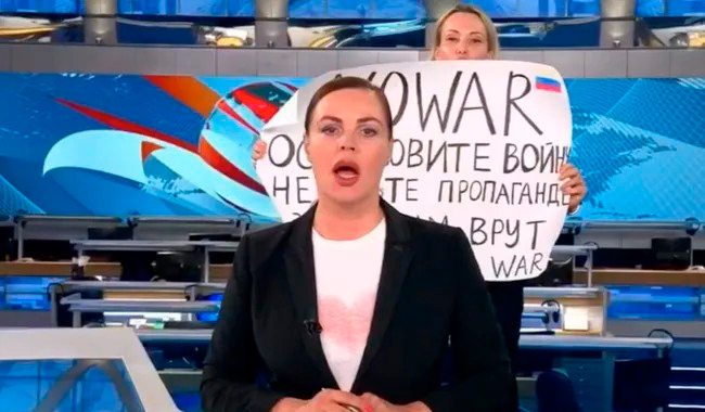 Ошеломляющий инцидент произошел во время вечерней программы новостей на главном канале России. Казалось, ничего не предвещало неожиданностей — ведущая Екатерина Андреева монотонно рассказывала, как российская медицина собирается выживать в условиях санкций, когда за ее спиной появилась девушка с огромным плакатом.