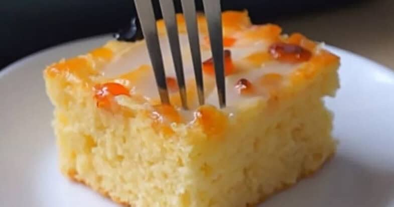 Достаю горячий десерт и сразу же поливаю его отложенной кефирной смесью, равномерно ее распределяя. Готово!