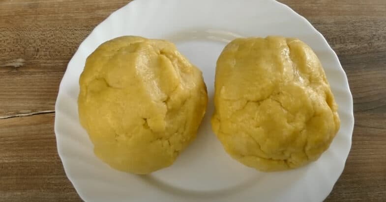 Делю тесто на 2 равные части, одну откладываю в пакет и в холодильник на 30 минут.