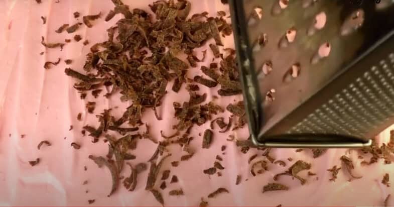 Выкладываю в форму белковую массу, шоколадное тесто из морозильной камеры натираю на терке. Выпекаю сырник в разогретой духовке до 170 градусов примерно 1 час 20 минут.