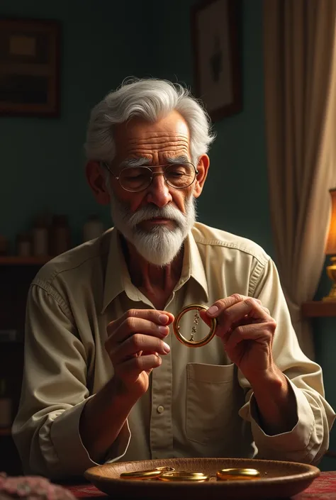 Старик медленно провел пальцами по холодному металлу браслета. Его дрожащие руки, испещренные тонкими голубыми прожилками, осторожно обхватили украшение, словно в нем таилась целая жизнь. Глаза за толстыми стеклами очков наполнились влагой, но он не позволил ни единой слезе сорваться с ресниц.